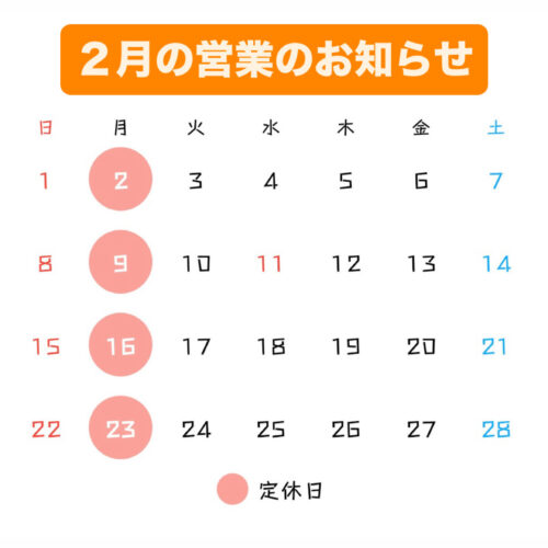 2月の営業のお知らせ